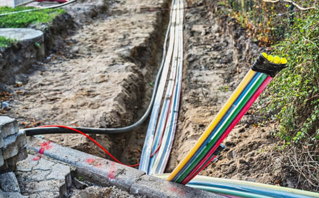 Complete installation of underground service cables from the nearest network pillar or pit to your property, including all trenching, conduit installation and terminations.